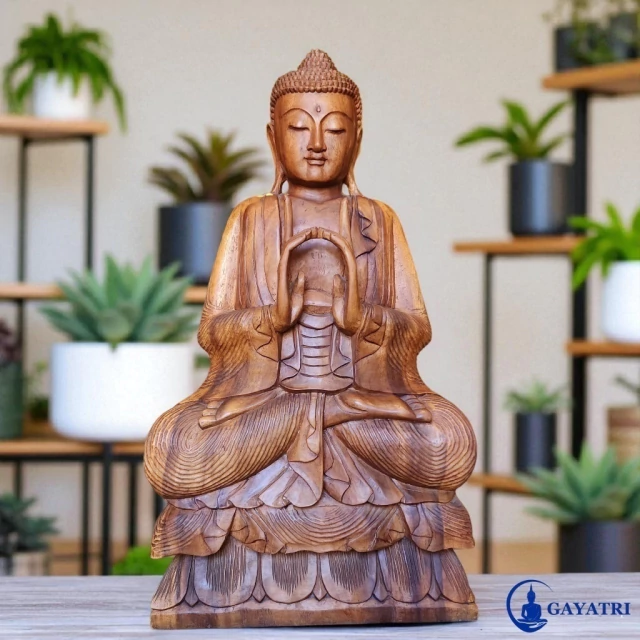 Buda em Madeira - Escultura de 1 Metro Transforme seu espaço com esta magnífica Estátua de Buda esculpida em madeira, com impressionantes 1 metro de altura. Uma peça artesanal que traz a energia serena e a espiritualidade do Buda para sua sala, ambiente zen ou sala de Yoga.