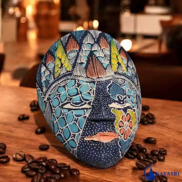 A Máscara Batik é produzida em madeira na Ilha de Bali, Indonésia. Possui pintura única, tornando assim uma peça exclusiva.