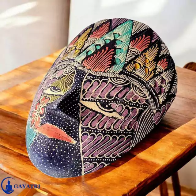 A Máscara Batik é produzida em madeira na Ilha de Bali, Indonésia. Possui pintura única, tornando assim uma peça exclusiva.