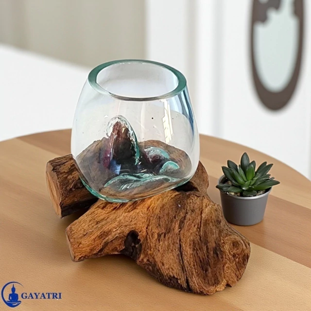 Adicione um toque de natureza ao seu cotidiano com o nosso Terrário de Vidro no Tronco de Madeira.